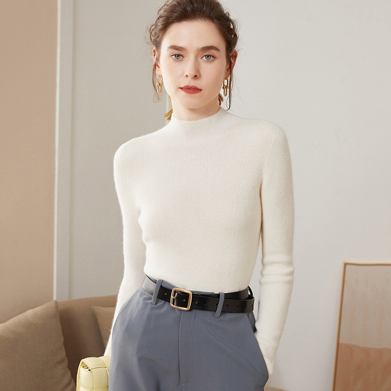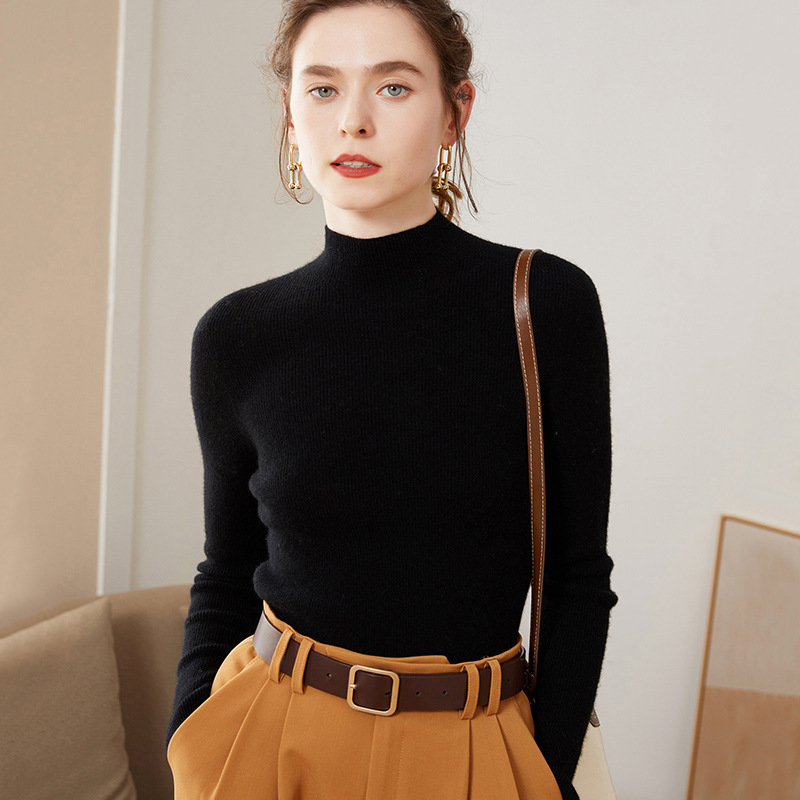 Half turtleneck sweater for women 100% pure wool slim fit base sweater